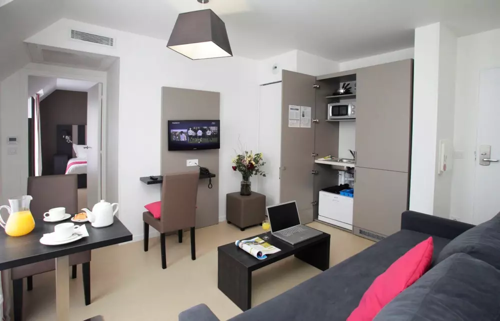 Votre appart hôtel à Rennes propose 90 logements répartis sur 5 étages et desservis par ascenseur. Vous séjournerez parmi les chambres 2 personnes, Junior Suites 2/3 personnes ou Suites 2/4 personnes confortablement équipés pour vous accueillir dans les meilleures conditions.