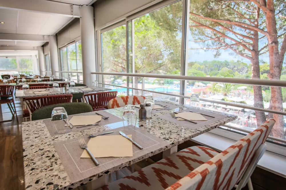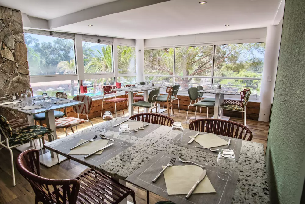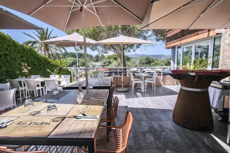 • 3 restaurants sur place : "Le Cinto" buffet classique ouvert toute la saison, « le Cors'R » terrasse piscine et un tout nouveau restaurant « Le Padru » avec spécialités locales ouverts en vacances scolaires estivales.