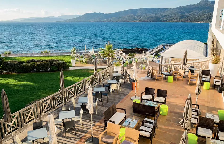 - Bar lounge avec terrasse donnant sur le Golfe de Valinco