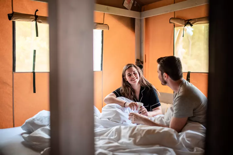 Ce parc de 6 hectares est entouré de forêts, d'étangs et de landes typiques du Limbourg belge, offrant un cadre calme et rafraîchissant. Les tentes glamping sont idéalement situées en bordure de forêt, bien espacées pour préserver l'intimité, avec des emplacements larges et aménagés pour un séjour serein.