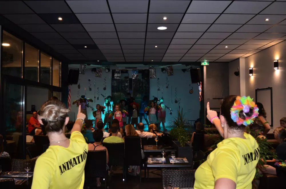 Durant la haute saison, notre équipe d'animation propose un programme varié et divertissant pour toute la famille. Les enfants de 4 à 12 ans profitent du Mini-Club avec des animateurs bilingues (français-anglais) et des activités ludiques : chasse aux trésors, mini-disco, tournois sportifs et le SHOW TIME du vendredi soir. Les ados se retrouvent autour de défis sportifs, soirées mousse et rencontres animées.