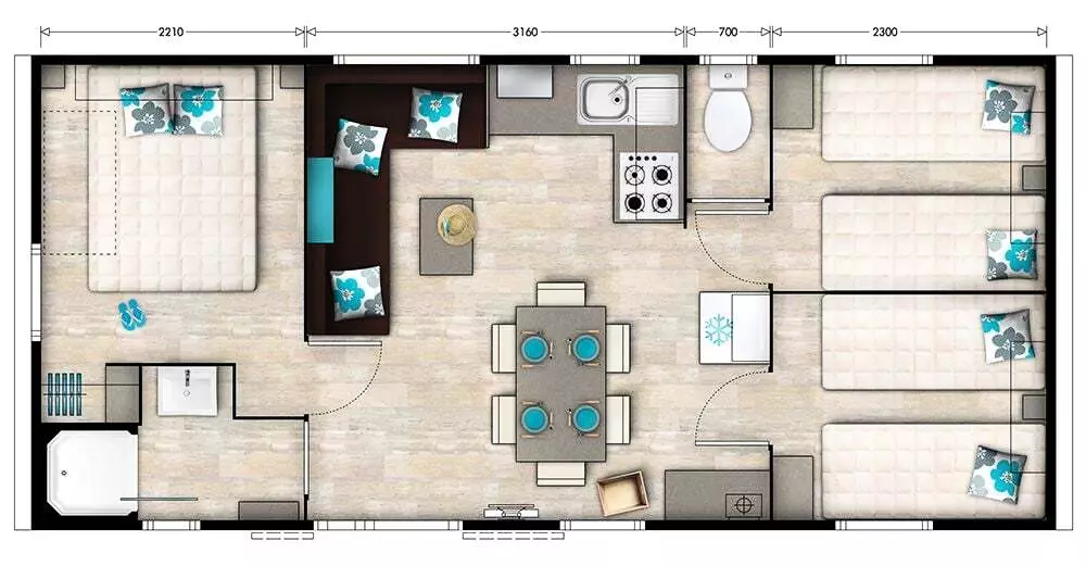 - Ménage de fin de séjour (souscrit dès la réservation) (en supplément)
