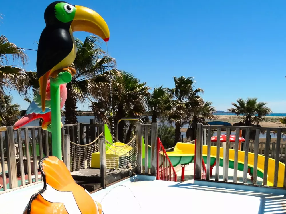 Profitez des plaisirs de la baignade avec sa grande piscine extérieure chauffée (profondeur de 1,10 m à 1,30 m) équipée d'un espace balnéo avec jets d'eau, sa pataugeoire de 190 m² agrémentée d'un toboggan et de nombreux jeux aqualudiques colorés pour les plus petits.