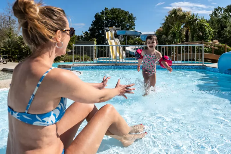 - 1 pataugeoire extérieure pour les plus petits, équipée d'un toboggan et de jeux aqualudiques, pour barboter et faire le crocodile avec les copains.