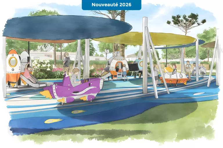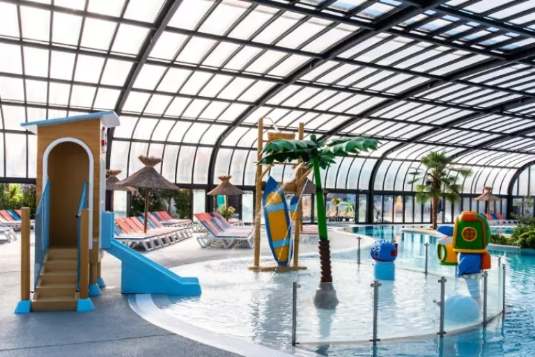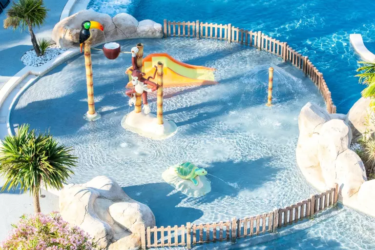 Un bel espace aquatique sera accessible : piscine extérieure chauffée de 850m², une rivière sauvage et un lagon, 13 toboggans (1 à sensation "Space Hole", 1 "body slide", 1 à bouée, 10 pentaglisses (dont 3 pour enfants), un jardin d'eau extérieur avec jeux, pataugeoires avec jeux, banquettes anatomiques, bain à remous, une piscine couverte chauffée (rénovée pour 2024) ouverte toute la saison ainsi que des plages de transats. Que du bonheur en perspective !