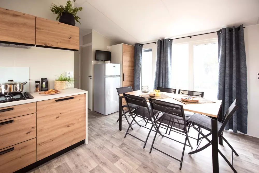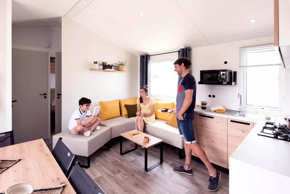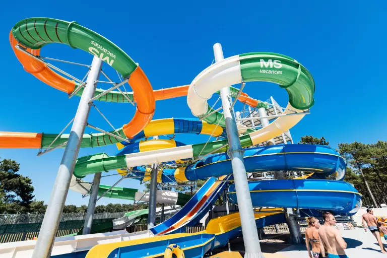 En plus de la plage, vous pourrez également vous baigner au sein d'un magnifique espace aquatique composé d'une piscine extérieure chauffée toute la saison, d'un bain à remous et surtout de toboggans multipistes !