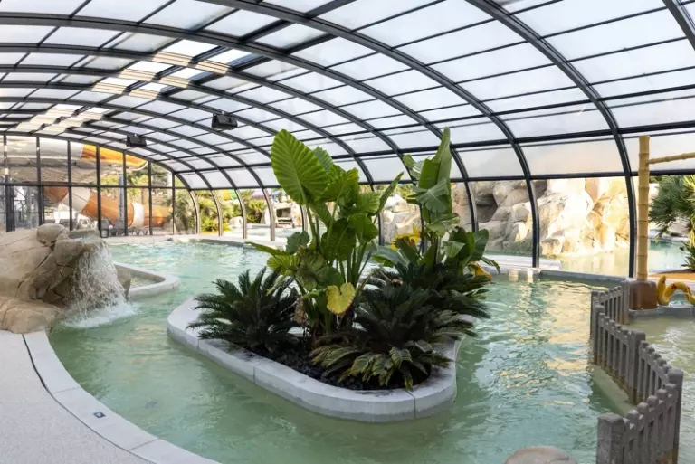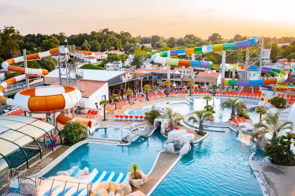 En plus de la plage, vous pourrez vous baigner au sein de l'espace aquatique de plus de 1500m² avec un espace intérieur de 200m² chauffé composé d'une pataugeoire, piscine à vagues, rivière sauvage et 2 toboggans dont 1 à sensations ainsi qu'un espace extérieur avec 12 toboggans dont le fameux "Space Hole" et un toboggan à bouée! Une piscine "Zen" est également à votre disposition pour plus de calme. Que du bonheur en perspective ! Les enfants pourront profiter des 2 toboggans, du jardin d'eau, et de la pataugeoire couverte de 300m² qui leur sont réservés.