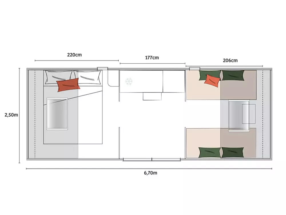 Il est possible de louer des mobil-homes, Bungalow toile de tente ou Cocosweet. Le camping dispose de plusieurs aire de jeux et d'une aire de fitness.