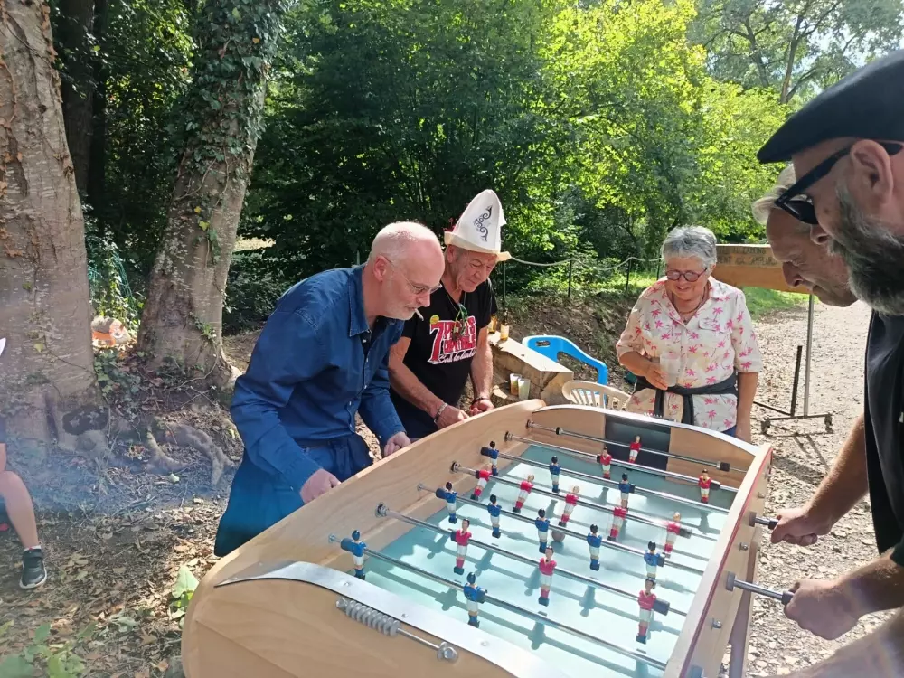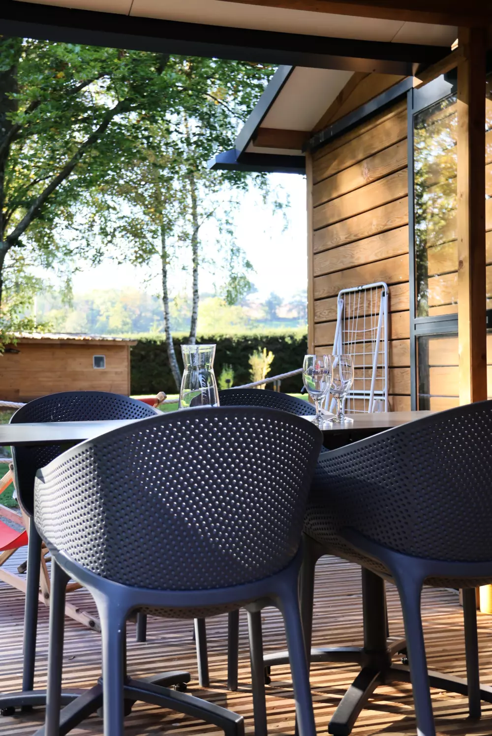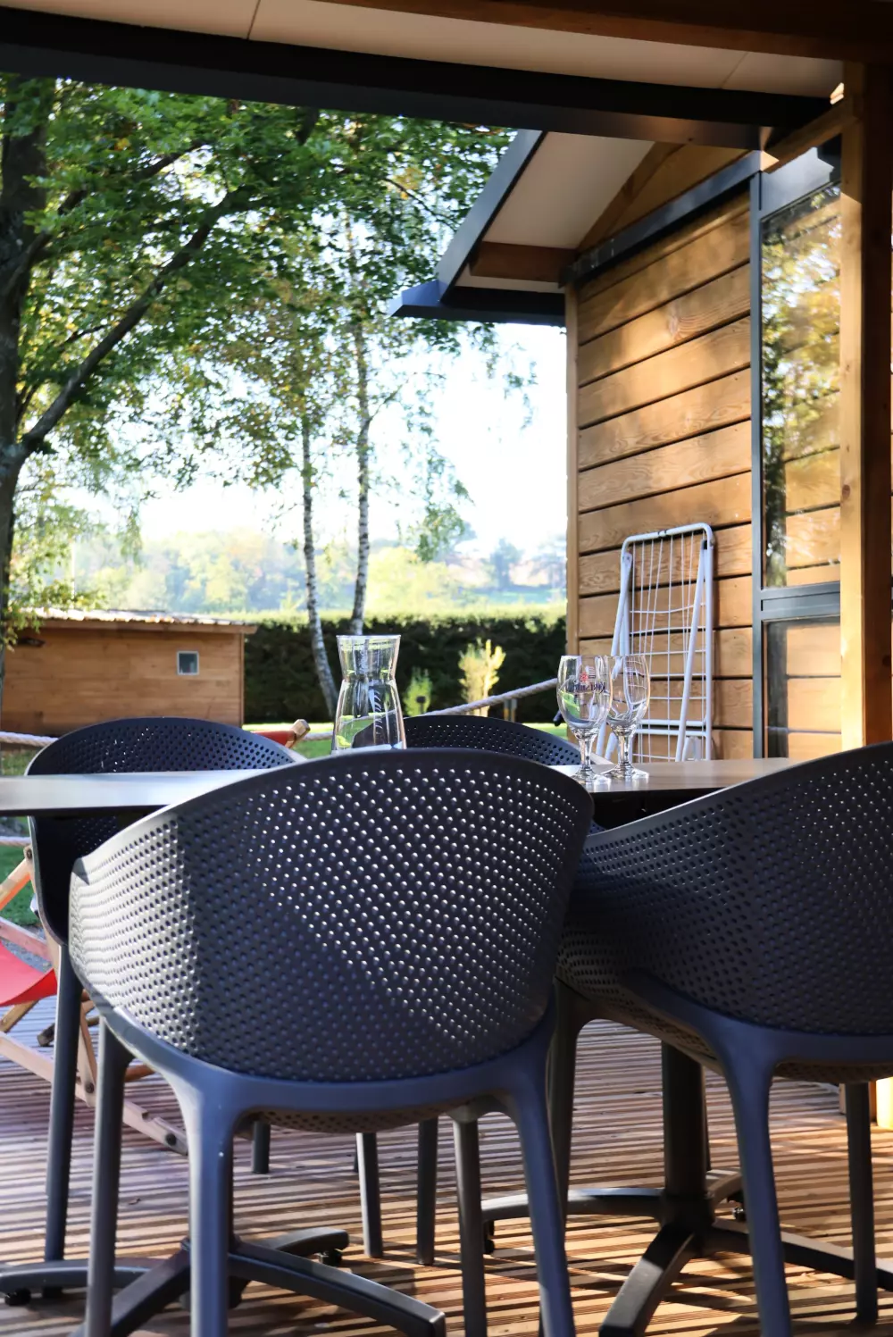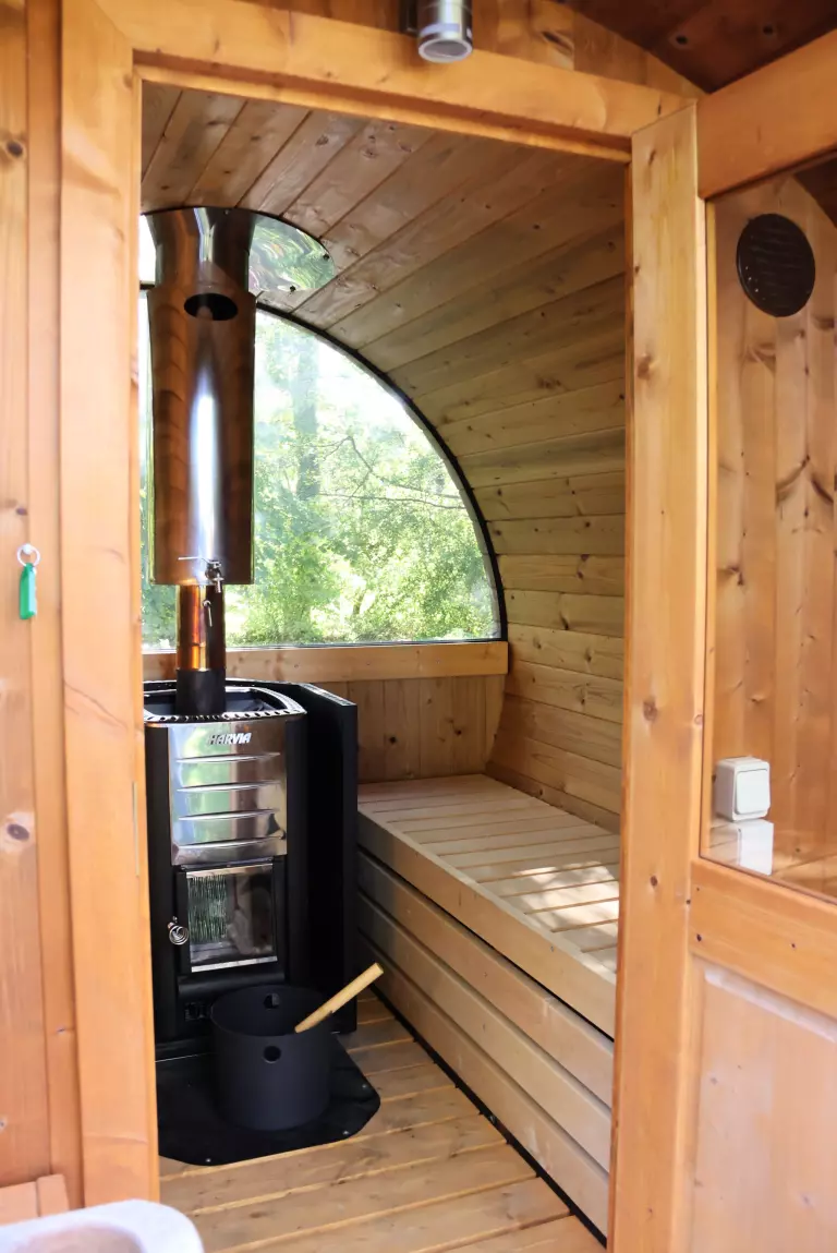 La détente est également au rendez-vous, bain nordique, sauna, espace jeux et détente, mobilier en bois, réalisé en auto-construction-bois.
