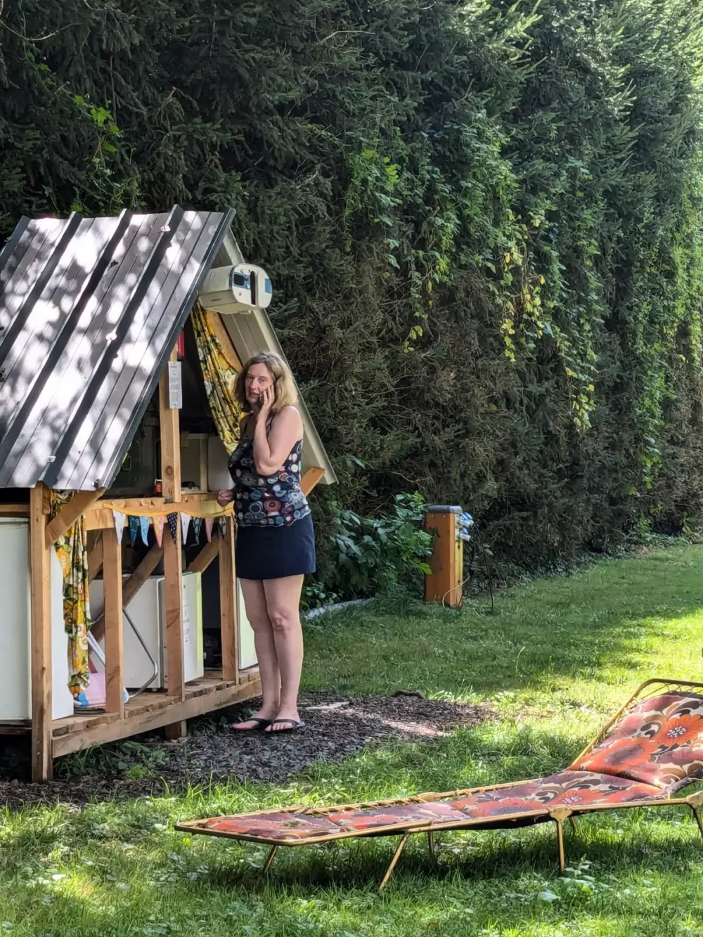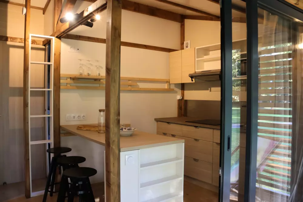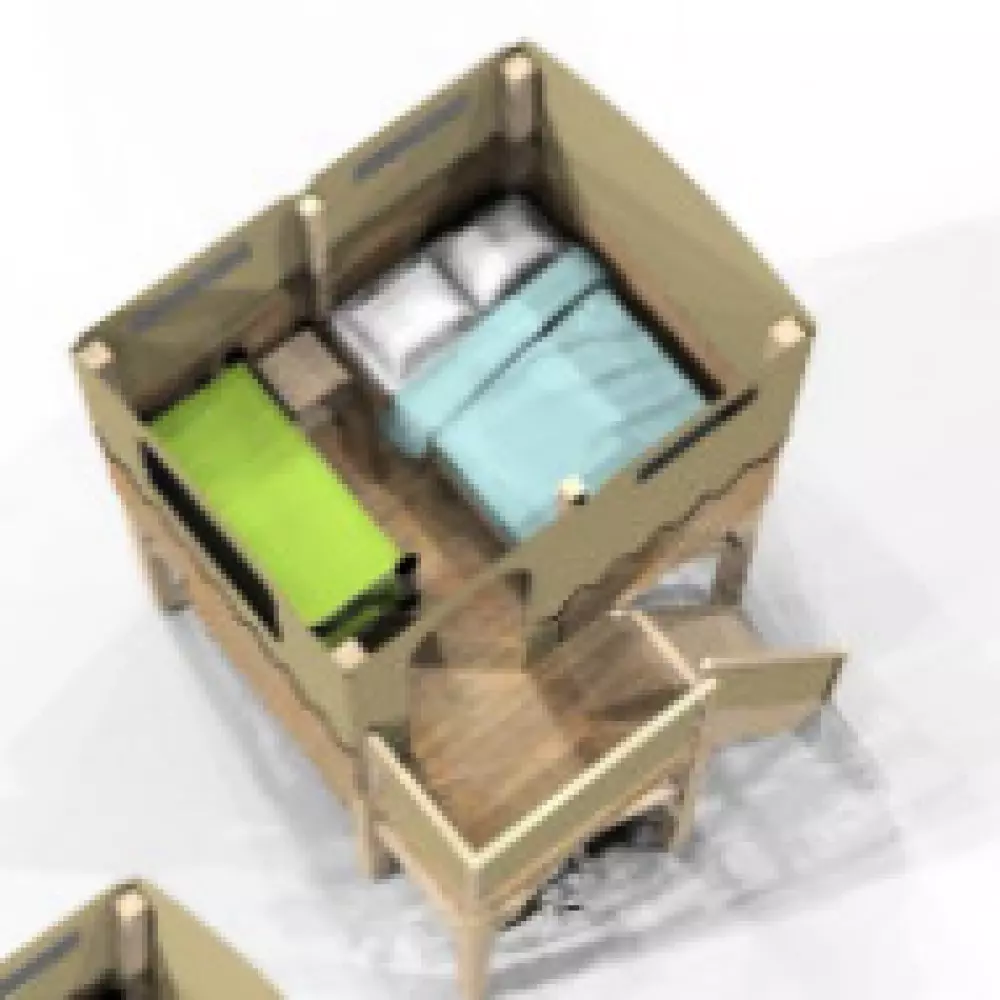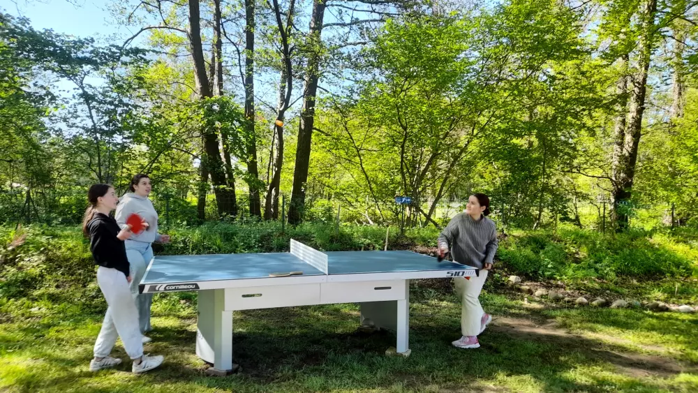 La détente est également au rendez-vous, bain nordique, sauna, espace jeux et détente, mobilier en bois, réalisé en auto-construction-bois.