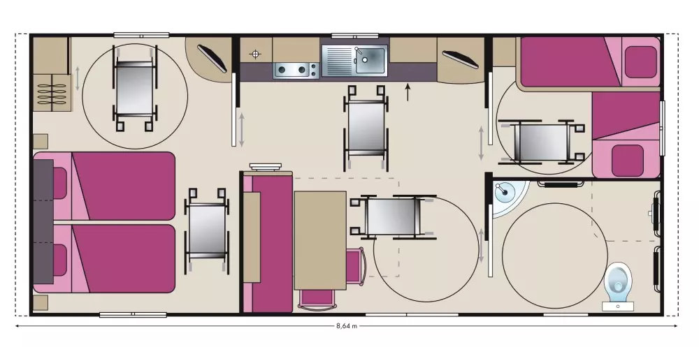 35 mobil homes, 10 Parcelles ombragées de 100 m2 environ, 5 emplacements spéciaux camping-cars, tous équipés avec électricité , délimités avec haie ou clôture