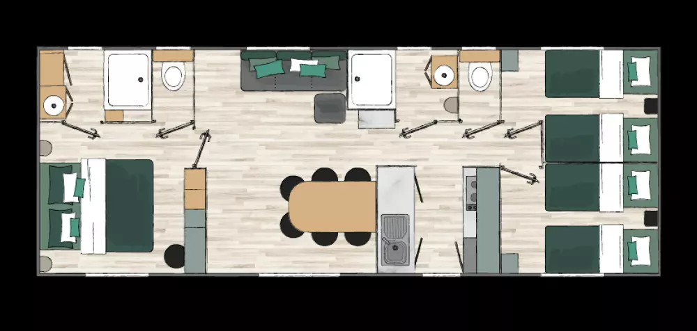 Le Domaine du Mès offre une variété de services et d'activités pour toute la famille. Le camping dispose de 2 piscines couvertes, idéales pour se baigner peu importe la météo. La première piscine couverte et chauffée dès les vacances d'avril, est équipée d'un toboggan aquatique parfait pour les moments de fun. L'autre bassin, plus calme est ouvert uniquement en été et conçu pour la détente, avec un coin plage et balnéo où vous pourrez vous relaxer, savourer des instants de tranquilité et profiter d'un cadre paisible. En plus des piscines, le Domaine du Mès propose de nombreuses autres activités pour tous les goûts et tous les âges : une aire de jeux, un city stade pour les passionnés de sport, des tables de ping-pong pour des matchs conviviaux, des terrains de pétanque pour des parties entre amis, et une salle de sport équipée. Dès le mois de mai et durant l'été, ne manquez pas les apéros-concerts, parfaits pour passer un moment agréable en famille ou entre amis.