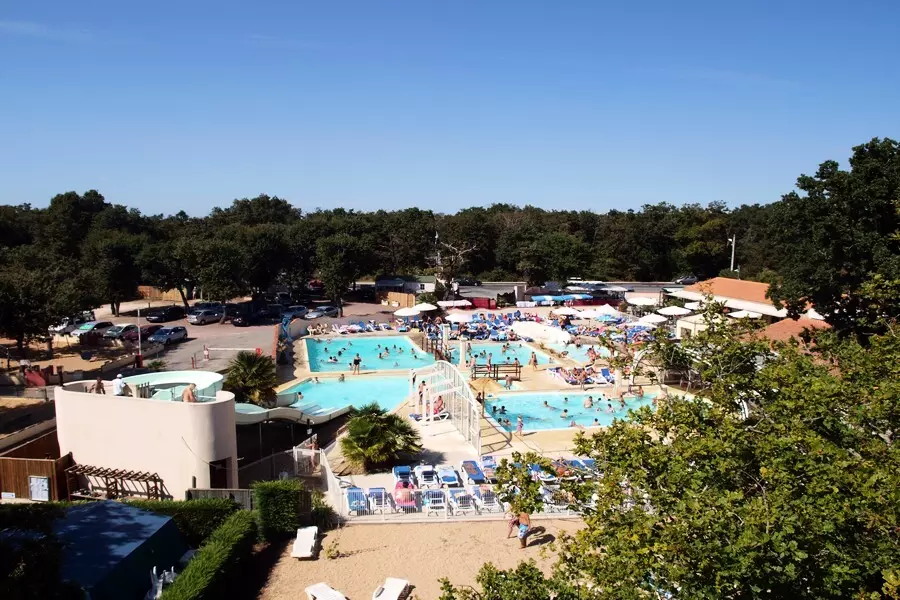 Petits et grands profiteront pleinement du parc aquatique composé de 4 bassins dont une piscine couverte et chauffée, d'une pataugeoire avec toboggans, de bains bouillonnants, buses de massage.