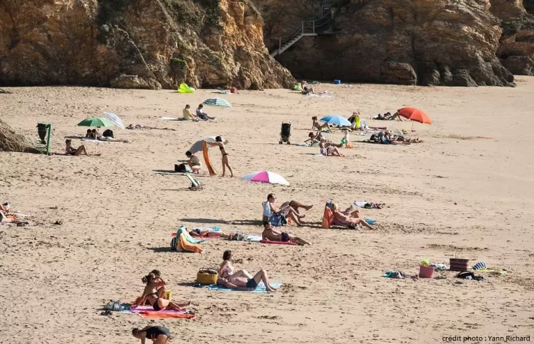 Pour vous rendre de votre camping jusqu'à Tharon-Plage, suivez sur la gauche le boulevard de l'Océan en voiture, ou le sentier piétonnier pour les plus courageux. Superbe plage de sable fin au bout du chemin !