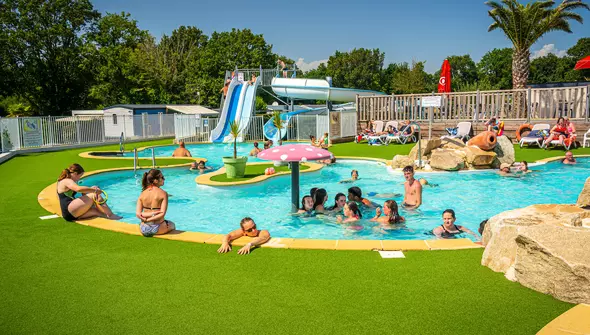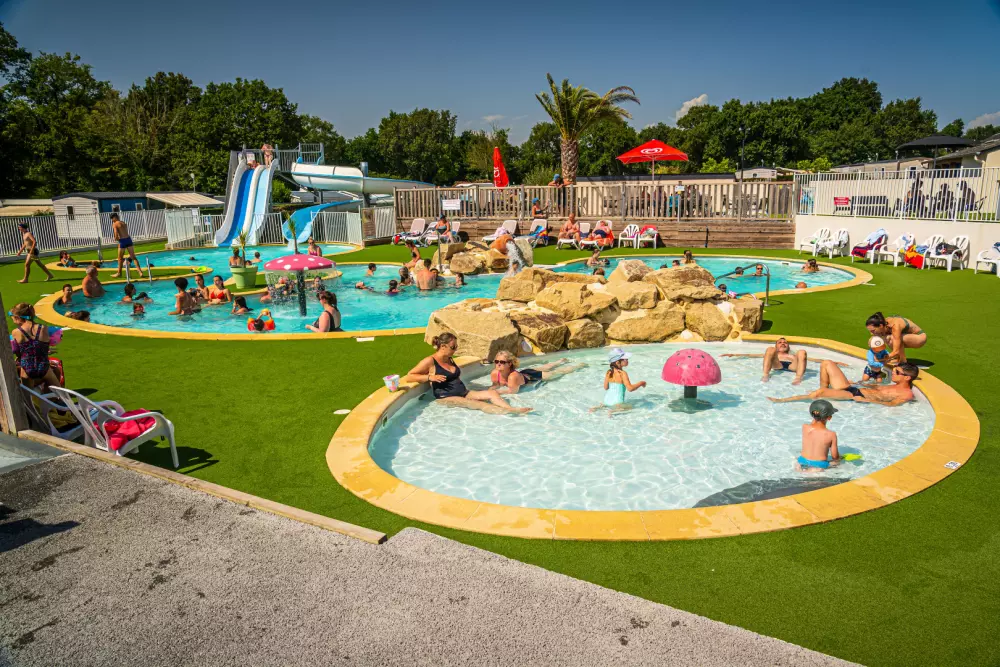 • Parc aquatique complet avec piscines, toboggans et espace couvert