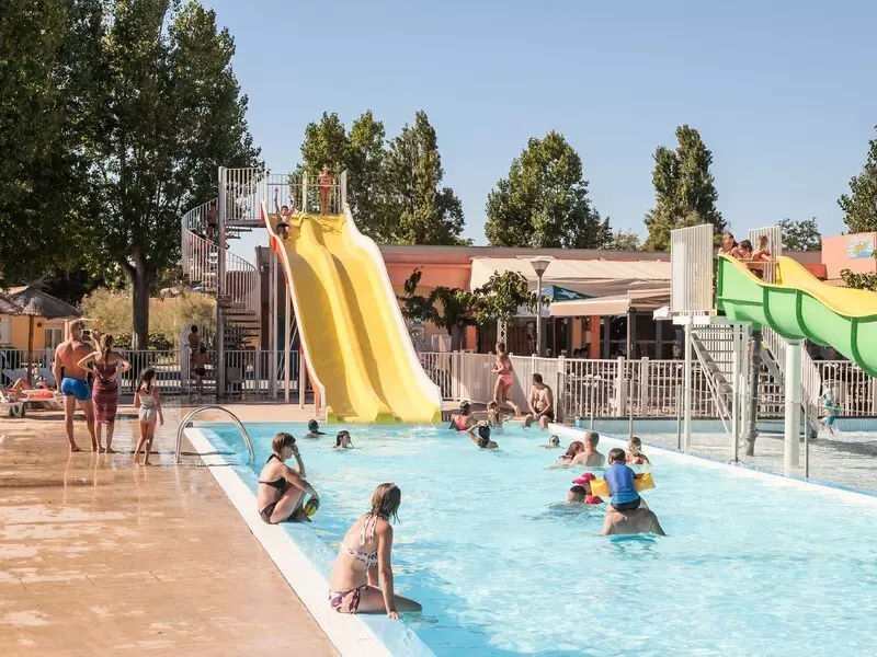 • Piscine extérieure avec pataugeoire, jeux d'eau et toboggans