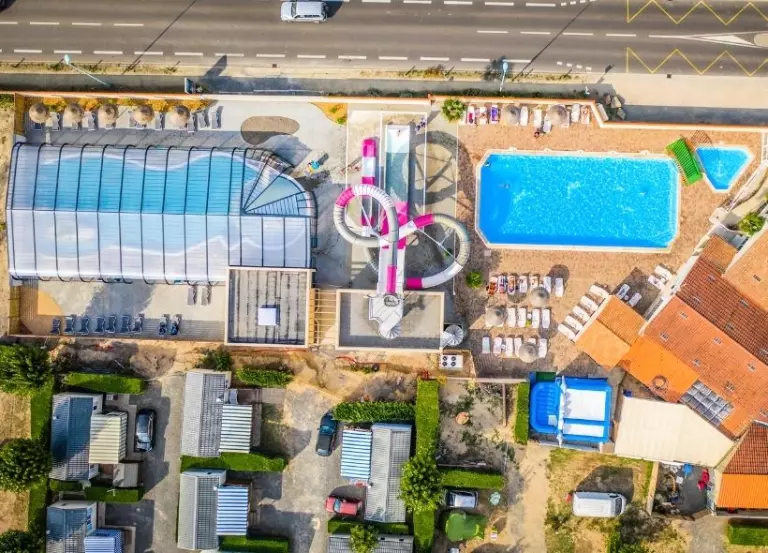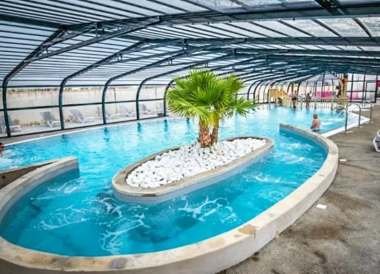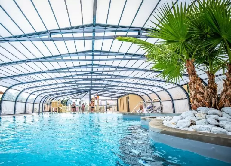 L'espace aquatique est doté d'une piscine couverte et chauffée avec pataugeoire aqualudique ainsi que d'une piscine extérieure avec pataugeoire et 2 pistes de toboggans aquatiques, vous pourrez vous rafraîchir et vous amuser en famille sous le soleil estival.