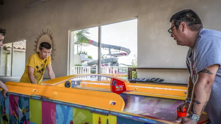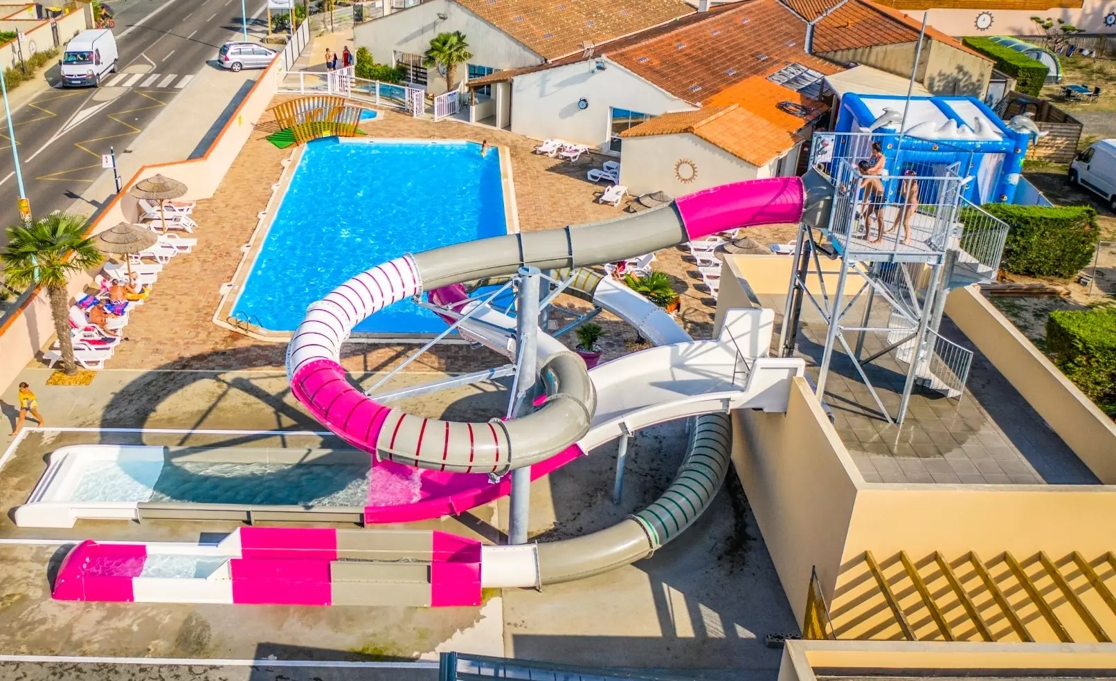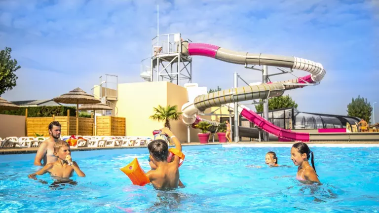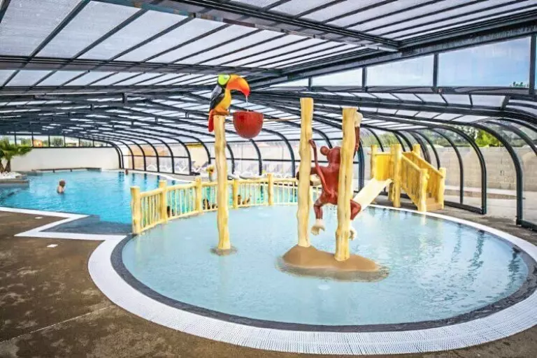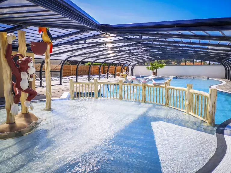 Pour vous garantir de belles vacances en famille, le camping vous propose un espace aquatique avec une piscine couverte chauffée avec pataugeoire aqualudique, une piscine extérieure avec une pataugeoire pour enfants, ainsi que deux pistes de toboggans, offrant des moments de divertissement pour toute la famille.