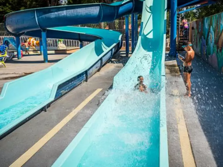 • D'avril à septembre, toute la famille profitera de l'espace aquatique composé d'une piscine extérieure, d'une pataugeoire avec jeux d'eau et de deux toboggans aquatiques.
