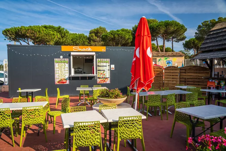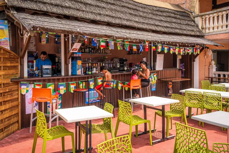 Après avoir profité toute la journée des infrastructures du camping, vous avez la possibilité de profiter des services du camping à votre disposition : le snack, l'épicerie, les plats à emporter et le bar pour vous restaurer.