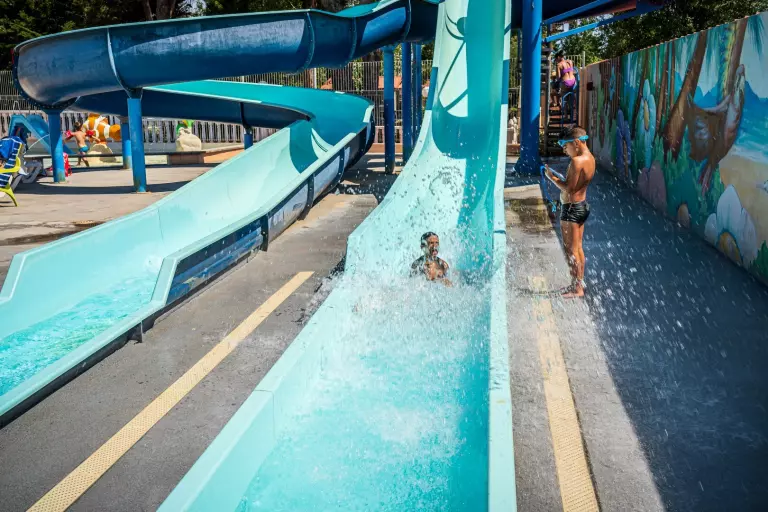 Faites le grand saut lors d'une pause rafraîchissante dans la piscine extérieure non chauffée du camping. Vos petits loulous trouveront, eux aussi, leur bonheur dans la pataugeoire tandis que les ados feront des concours de glisses dans les toboggans aquatiques.