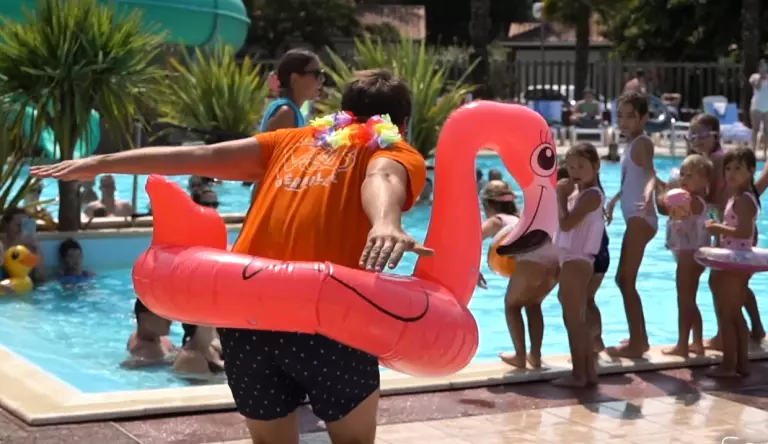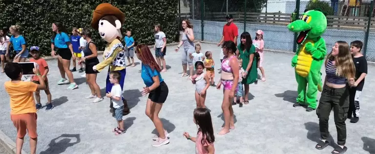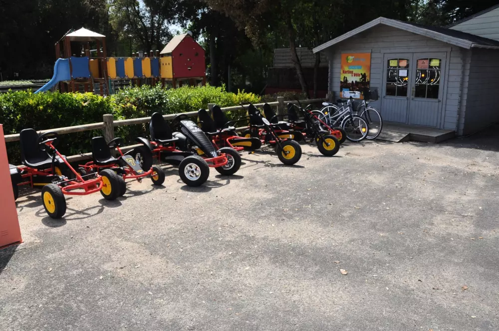 Durant le mois de juillet et août, un animateur accueillera gratuitement vos enfants âgés de 5 à 12 ans du lundi au vendredi matin. Diverses activités leur seront proposées : chasse au trésor, jeux, bricolage, tournois sportifs etc.….. Petits et grands seront heureux de se retrouver dans la salle de jeux pour jouer au billard, baby foot et air hockey. A l'extérieur une aire de jeux, un terrain multisports (avec foot et basket), table de ping-pong attendront les sportifs Les amateurs de pétanques pourront se retrouver sur le boulodrome. N'oublions pas l'apéro, occasion de se trémousser autour de la piscine pour la fameuse danse du camping !!!!!!!!Le camping, cette année, a innové, il vous propose des karts à pédales en location. Vous pourrez vous amuser à circuler au sein du camping.