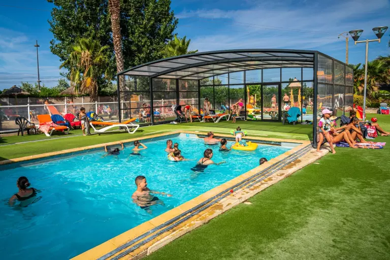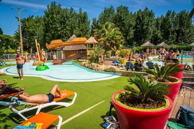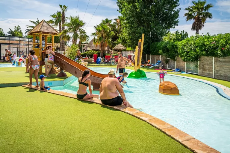 parc aquatique complet avec 2 piscines dont une couverte et chauffée (en hors saison), 2 pataugeoires ludiques pour les enfants et un toboggan aquatique !