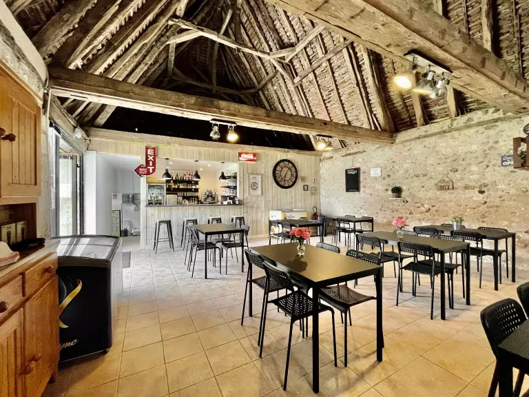 Aménagées sur une ancienne métairie, ces 3 bâtisses en pierres hébergent l'accueil, l'épicerie de dépannage et produits locaux, le snack-bar et sa salle de restauration, la laverie et les sanitaires.