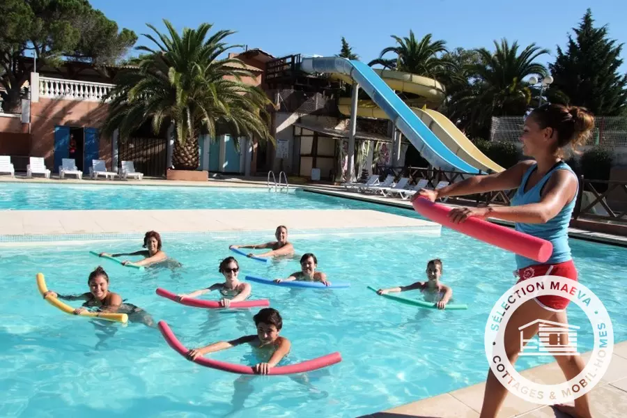 équipements de loisirs : terrain de tennis, terrain de pétanque, table de ping-pong , football, basketball, aquagym, jeux pour enfants, vélo électrique, aquabike.