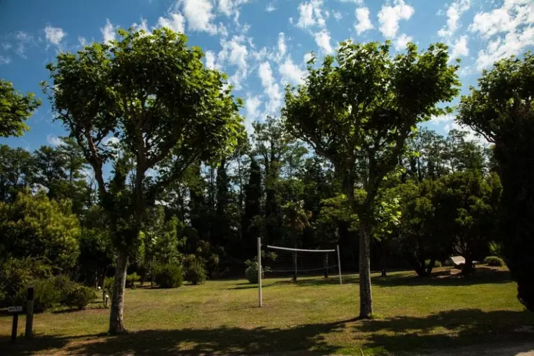 Loisirs : Piscine entourée de végétation luxuriante, parcours botanique, terrain de pétanque, aire de jeux enfants, trampoline, terrain de volley-ball, panier de basket, cage de handball, table de ping-pong.
