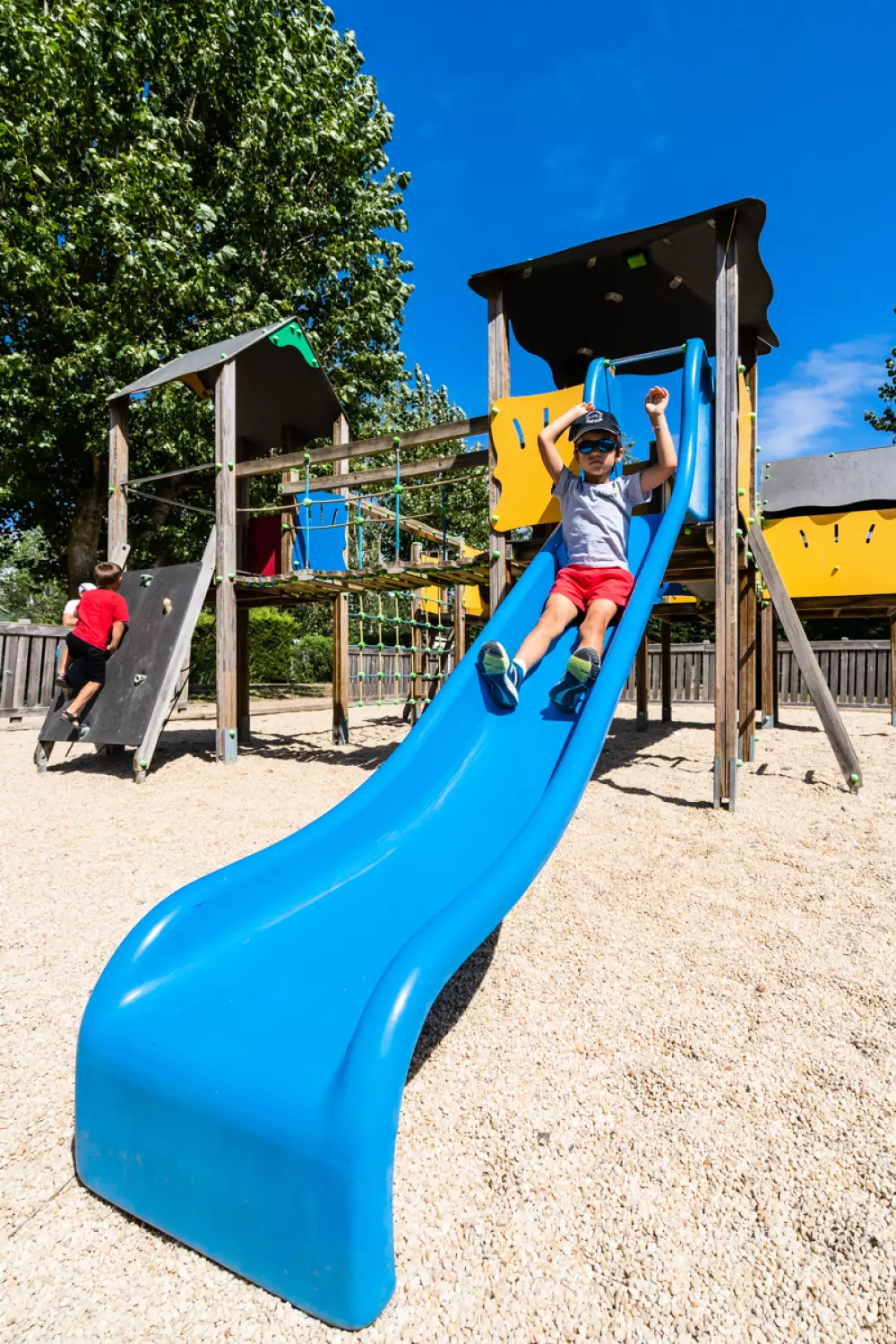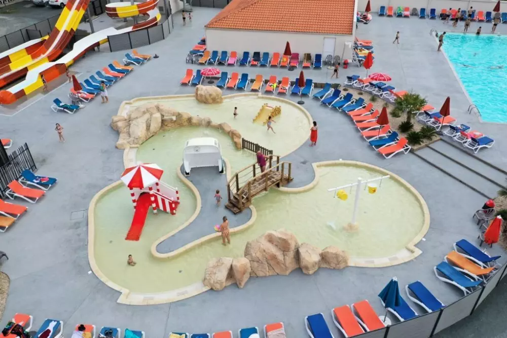 - Piscine : Espace aquatique extérieur : chauffé : 1 bassin, 3 toboggans, un espace jeunes enfants avec une pataugeoire, pour les plus petits et jusqu'à 8 ans environ, et un espace jeux pour les plus grands. Ouvert toute la saison