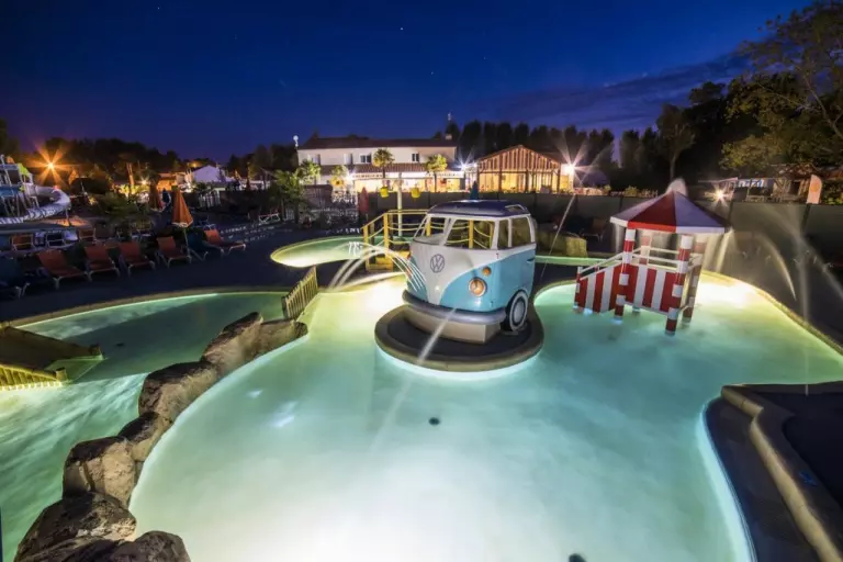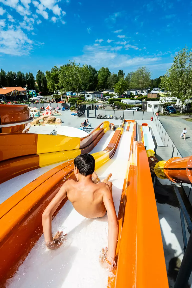 Le parc aquatique du camping ravira petits et grands. Il est composé d'un espace extérieur (ouvert toute la saison), avec une piscine extérieure chauffée, 3 toboggans, un espace jeunes enfants avec une pataugeoire, pour les plus petits et jusqu'à 8 ans environ et un espace jeux pour les plus grands. L'espace couvert dispose de 2 bassins et d'1 jacuzzi. Ouvert toute la saison.