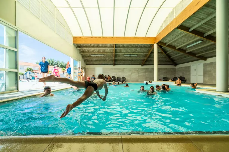 - Piscine couverte : L’espace couvert dispose de 2 bassins et d’1 jacuzzi Ouvert toute la saison