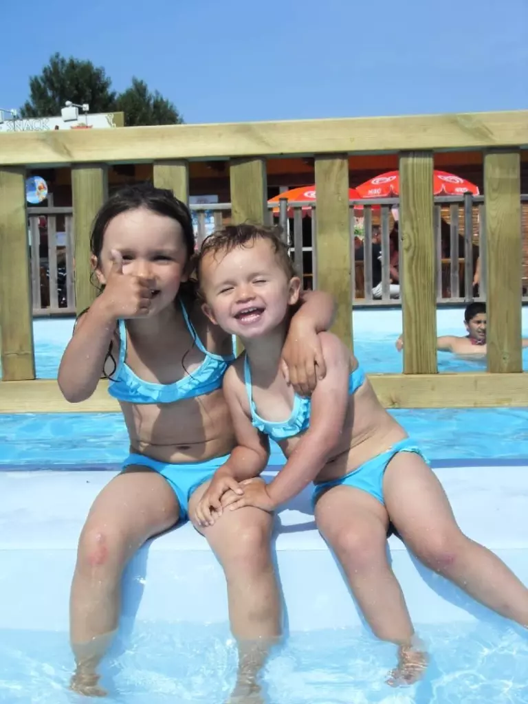 L'espace aquatique extérieur est composé de 2 bassins, d'une pataugeoire de 40m² avec un champignon fontaine et des geysers pour que les tout-petits profitent des plaisirs de la baignade en toute sécurité.