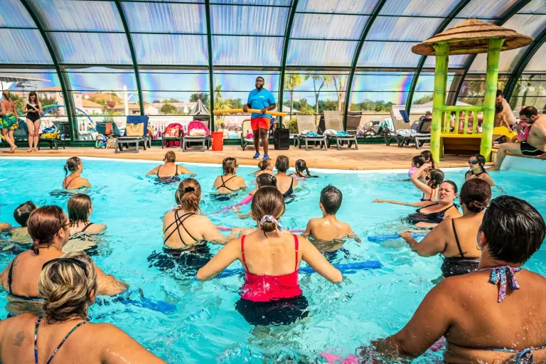Afin de vous garantir d'agréables moments en famille, le camping dispose de deux espaces aquatiques pour vous détendre d'avril à septembre. Un premier espace avec une piscine couverte, ouvrable et chauffée avec bain à remous pour les adultes et pataugeoire pour les enfants. Il faut traverser une route, peu passante, pour y accéder. À l'extérieur, retrouvez également une piscine chauffée (selon les conditions métrologiques) avec pataugeoire aqualudique et toboggans aquatiques. Le second espace est composé d'une piscine extérieure chauffée (selon les conditions métrologiques), bain à remous et rivière de marche.