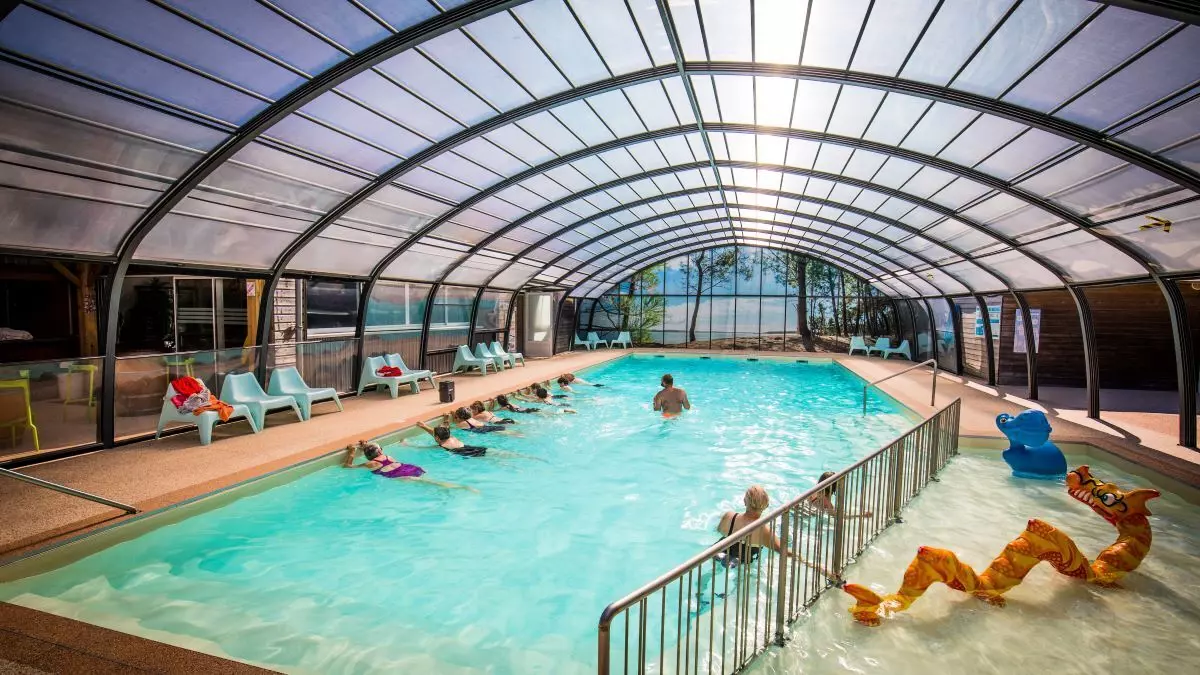 Pour vos moments de détente en famille ou entre amis, profitez de la piscine, doté de d'un bassin couvert et chauffé pour encore plus de confort, et des activités aquatiques pour petits et grands. Pour les plus jeunes, la pataugeoire reste accessible, ils pourront ainsi s'adonner à leurs activités sous le regard avisé de leurs parents. La piscine du camping dispose également de jeux aquatiques ludiques et de bassins permettant aux plus petits d'apprendre à nager.