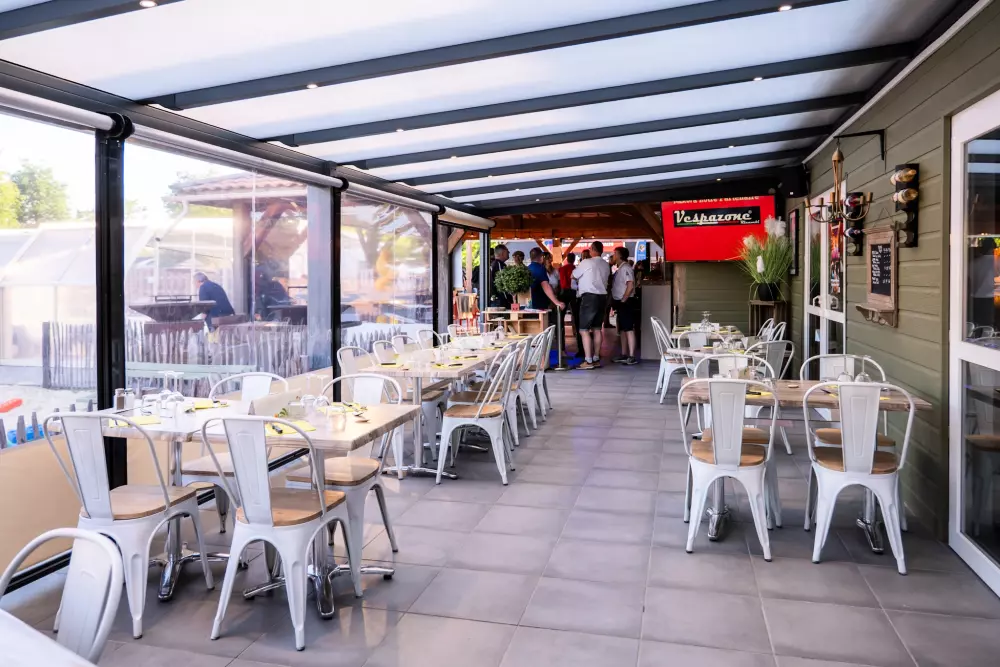 • Restaurant : bar - snack (pizza, plats à emporter, hamburger, frites, glaces) - sur réservation en basse saison - ouverts toute la saison - voir tarifs et règlement sur place
