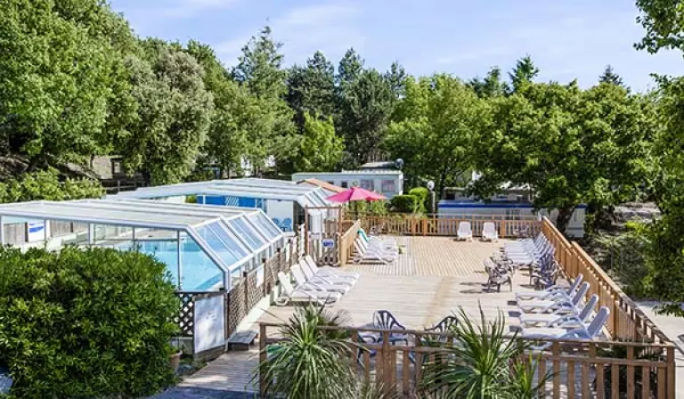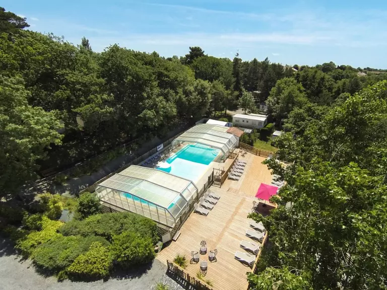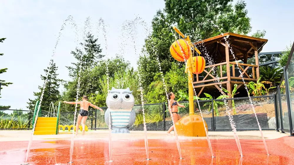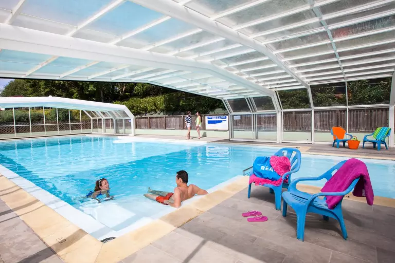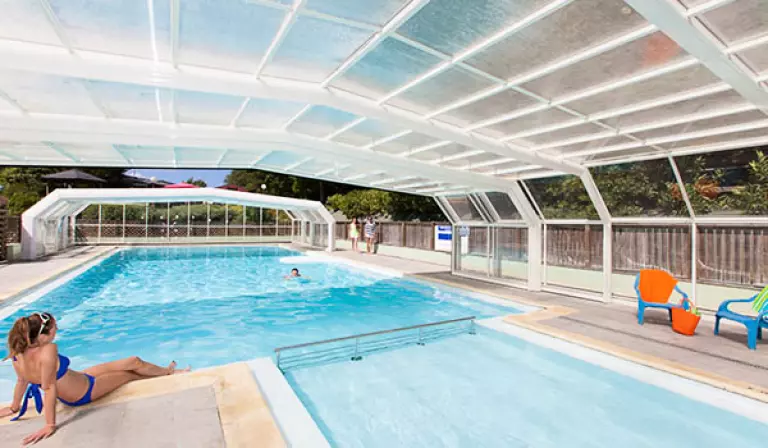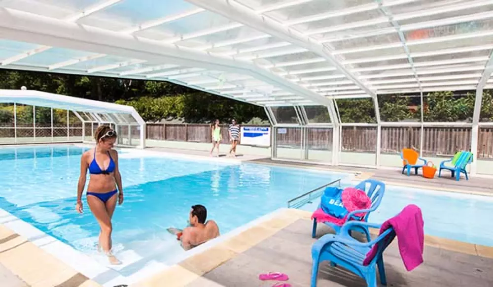 L'espace aquatique de 200 m² abrite une piscine couverte et chauffée, une pataugeoire avec jeux d'eau, et un solarium avec transats et parasols. Le soleil est au rendez-vous ? Le toit de la piscine se rétracte. Une journée mitigée ou des nuages menaçants à l'horizon ? Le toit se referme et vous continuez à vous décontracter dans le bassin à votre guise.