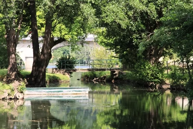 location d'emplacements, de mobil-homes - Pêches 2ème catégorie (parcours de nuit pour la carpe) - tous commerces au village à 0,800 mètres - 2 marchés par semaine - Au restaurant _Rive Gauche_ (500 mètres)1 animation/semaine : soirée dansante ou karaoké - piscine/toboggan aquatique mitoyens au camping - tennis, canoë, à proximité.
