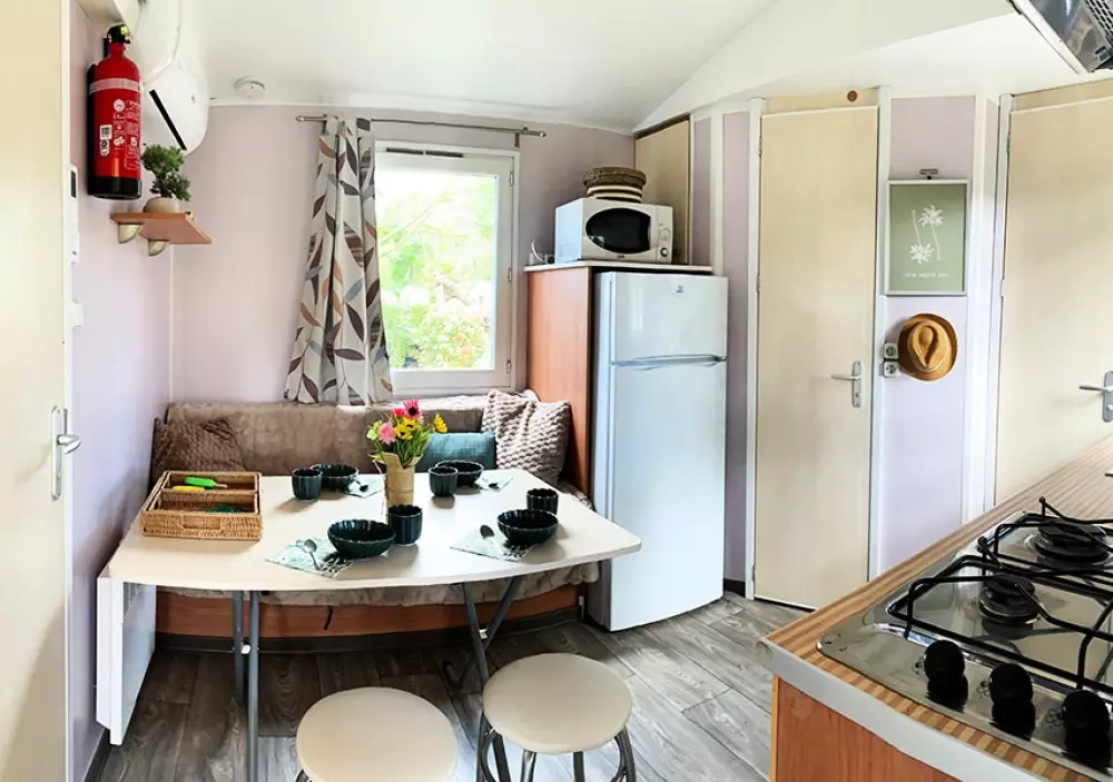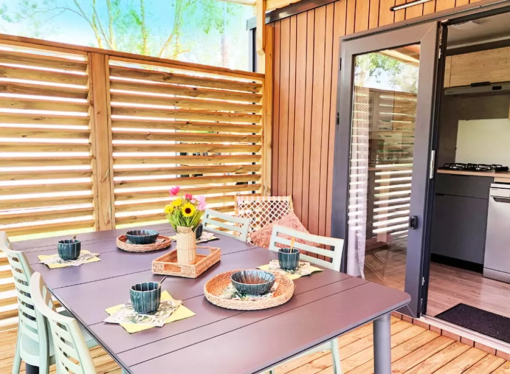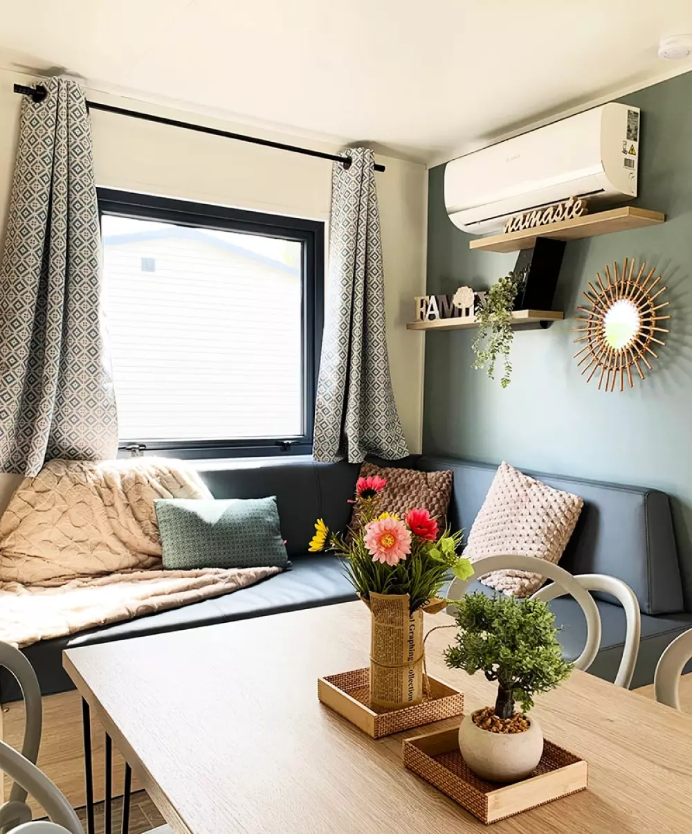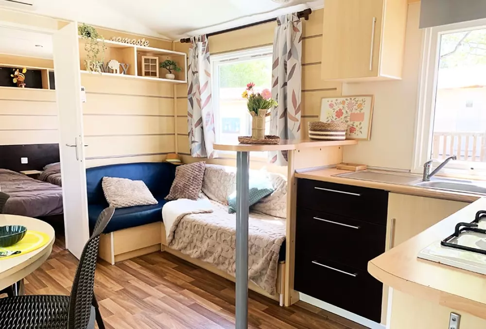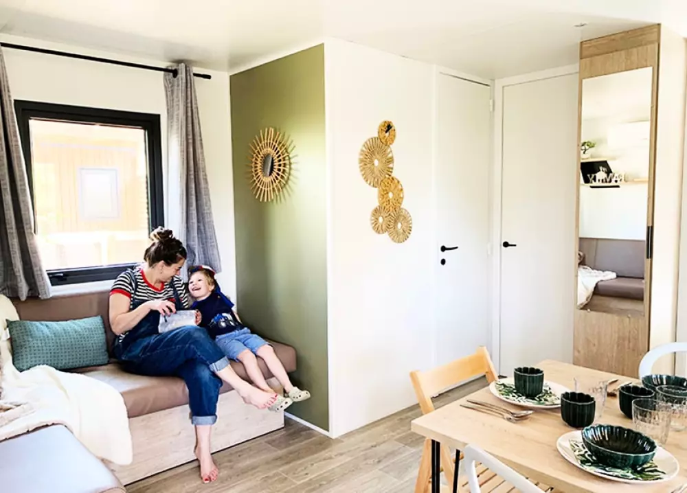 Mobil-homes modernes Premium ou Confort, alliant praticité et équipements haut de gamme.