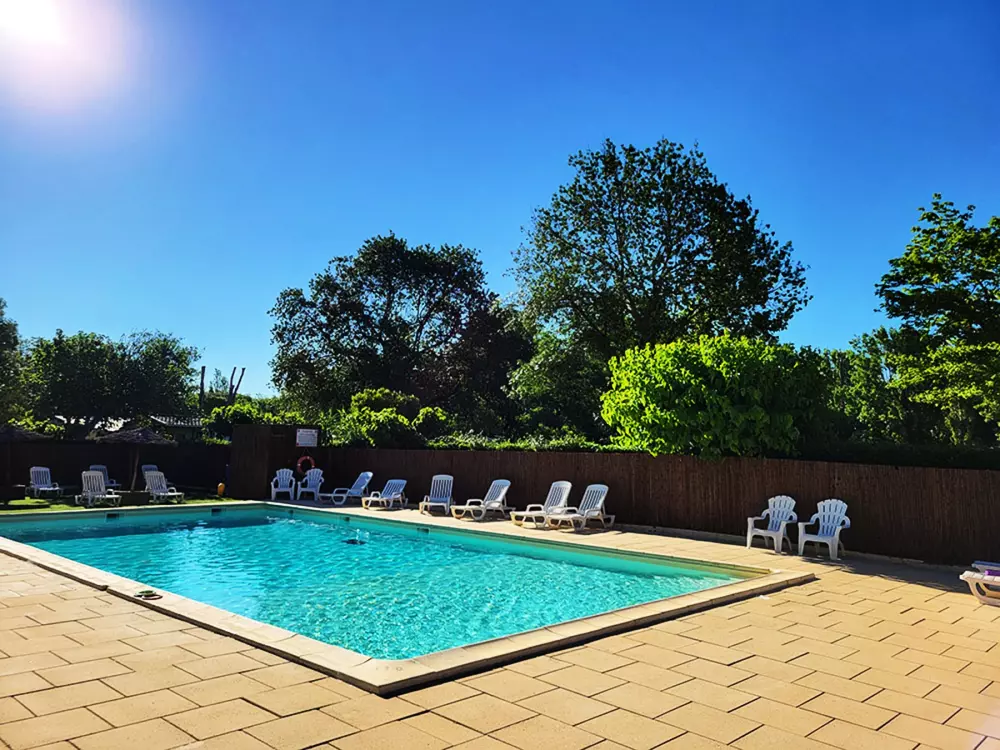 Piscine chauffée à 28° avec solarium (avril à septembre).