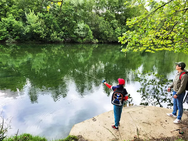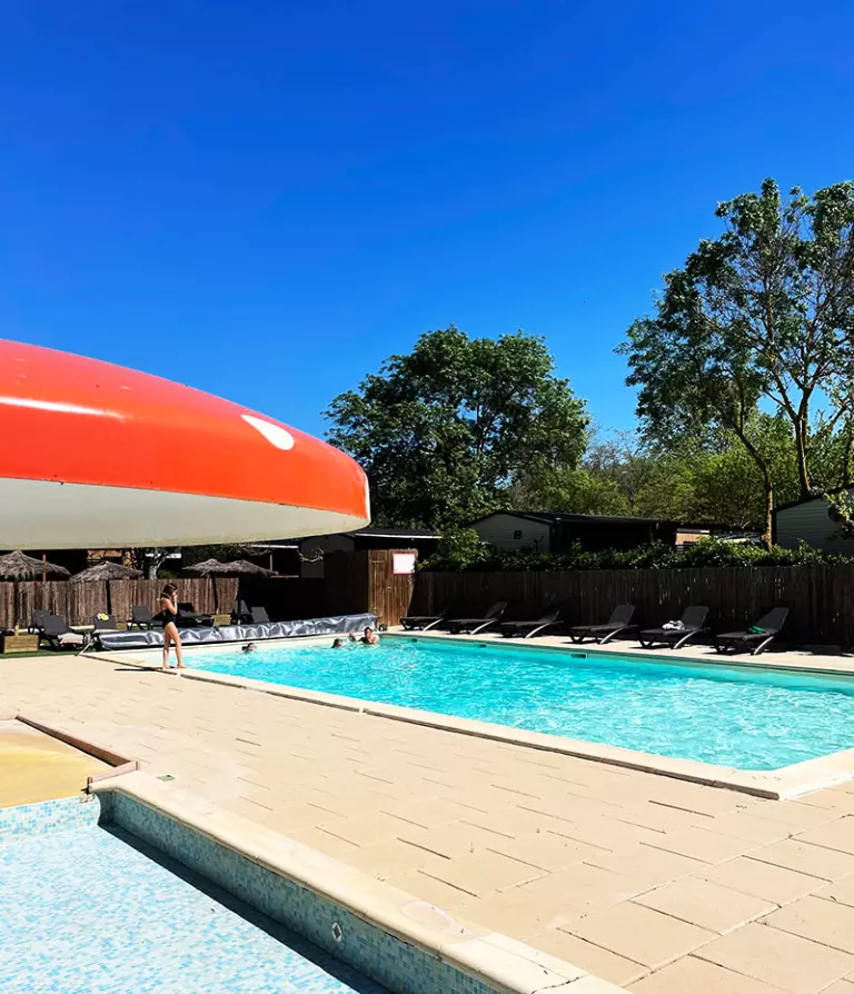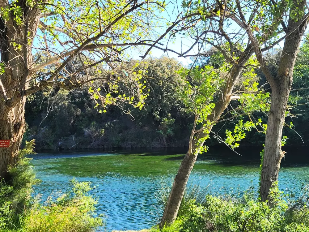 Baignade et détente au bord de la rivière, accessible directement depuis le camping.