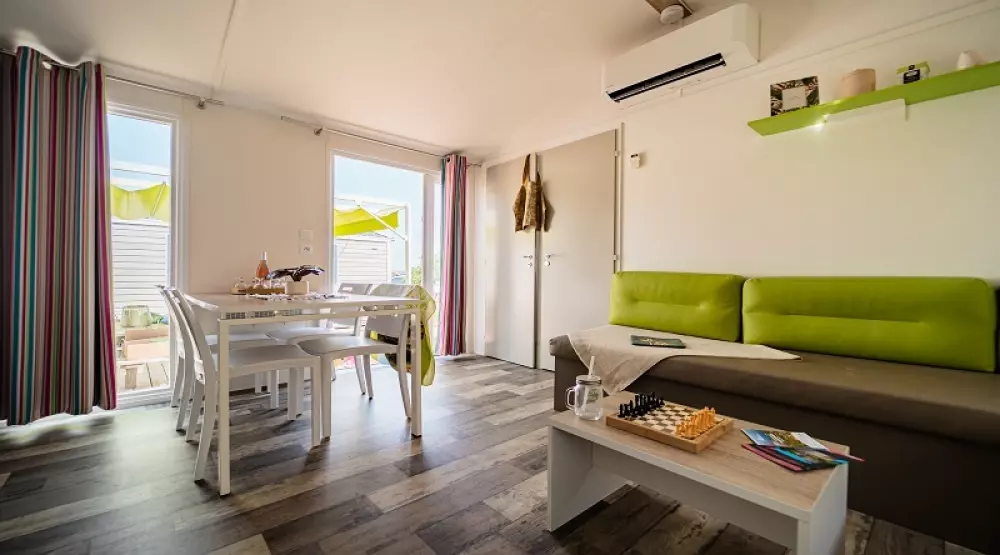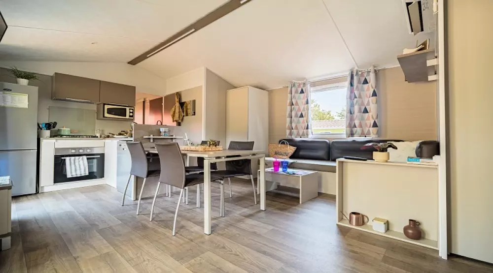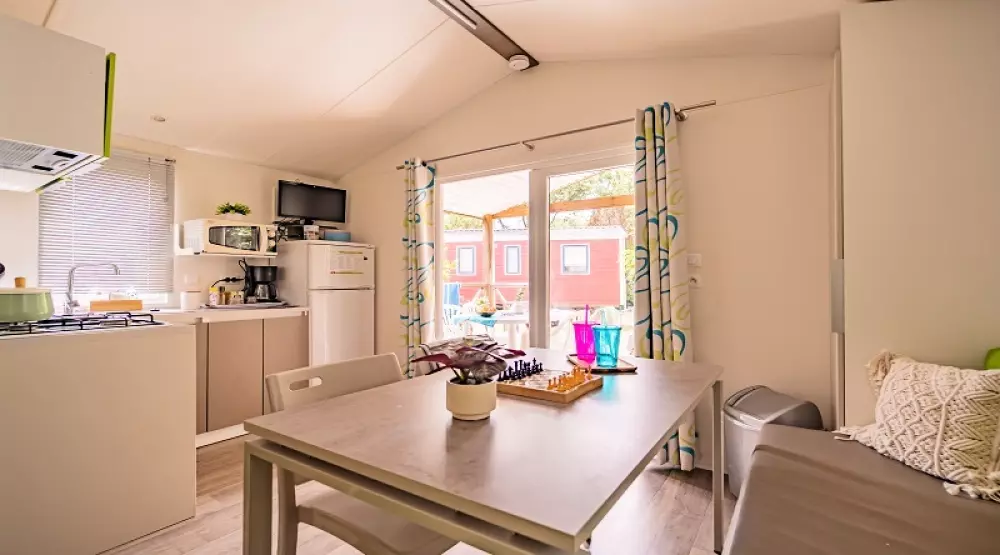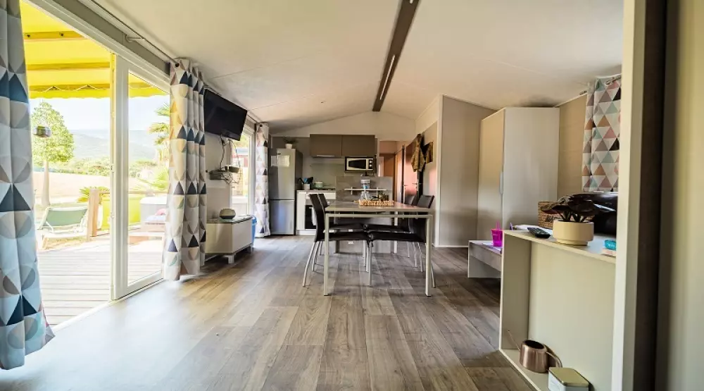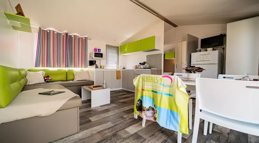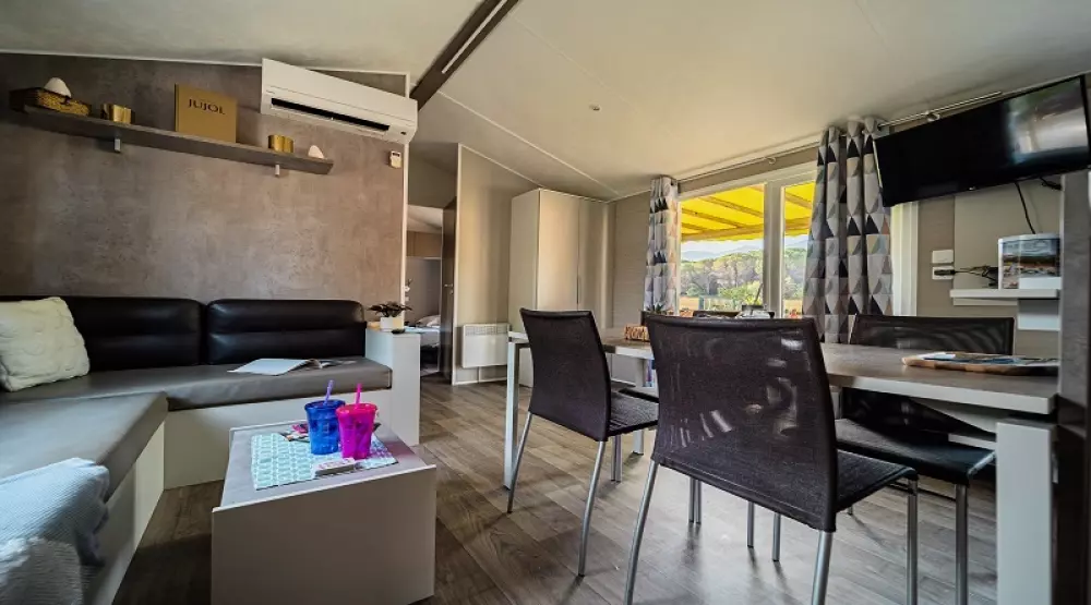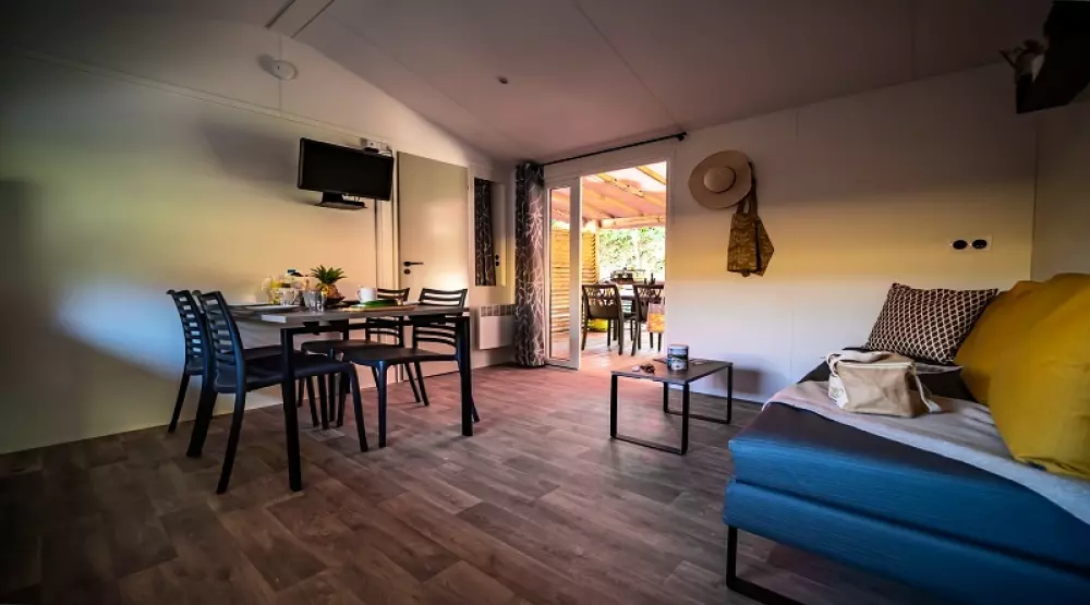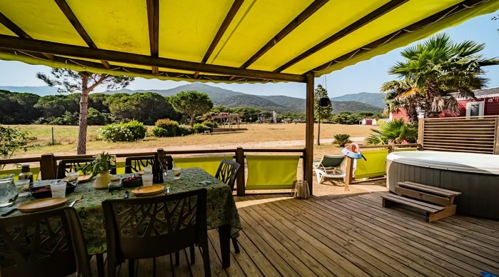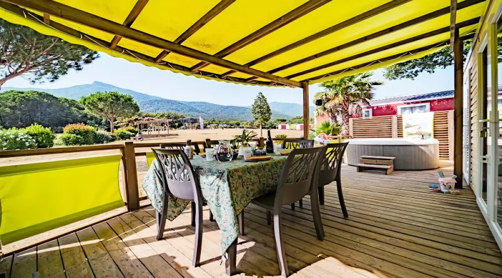 À 800m du village, dans un bois de chênes-lièges et de mimosas, il dispose de mobil homes et de chalets très confortables disposant pour la plupart de terrasses équipées et de nombreux équipements et services mis à votre disposition pour vous garantir des vacances réussies.