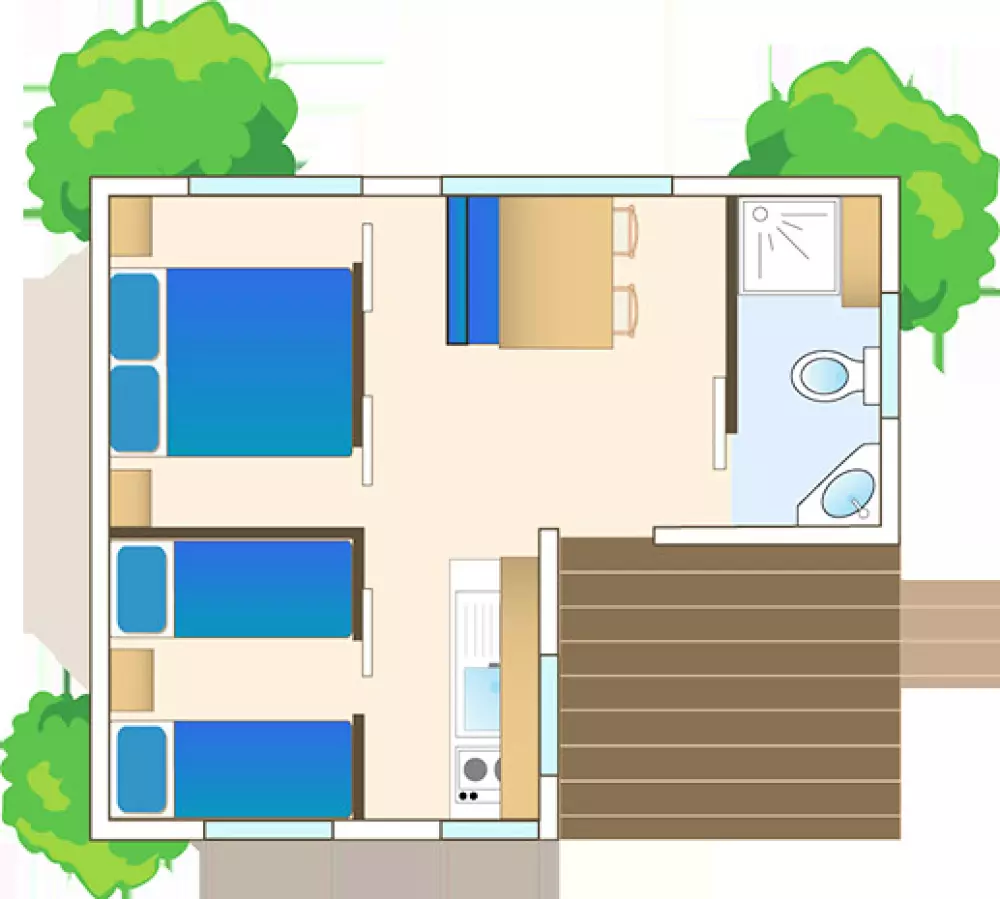 A partir de 195,00 € la semaine en Chalet ou Mobil-home pour 4 personnes.