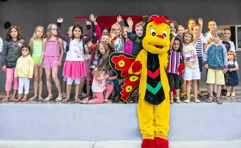 En été, notre équipe d'animation vous accueille pour des moments privilégiés de détente, de loisirs et d'amusement dans une infrastructure d'exception. Chaque semaine, lors de son welcome drink, notre équipe vous offre un verre de bienvenue, l'occasion de directement se plonger dans l'ambiance du domaine tout en découvrant le programme professionnel d'animation. Vos enfants de 5 à 12 ans seront accueillis gratuitement du lundi au vendredi environ 4 heures par jour au mini-club « L'île aux pirates ». Nos animateurs confirmés feront des vacances de vos enfants un succès en leur proposant un large éventail d'activités. Chaque soir en été, les parents pourront assister à la mini-disco et découvrir tous les vendredis le spectacle de leurs petits pirates. Aux Mûriers, vous n'avez pas le temps de vous ennuyer. Chaque semaine, un programme varié d'activités sportives vous est proposé (tournois sportifs, cours d'aquagym, jeux piscine ou apéro, etc.). Notre dynamique équipe assure l'ambiance du domaine chaque soir. Au programme: spectacles des animateurs, danses, cabarets, karaokés, grands jeux, spectacles pour enfants, magiciens, concerts, etc.; un programme synonyme de soirées réussies et inoubliables!