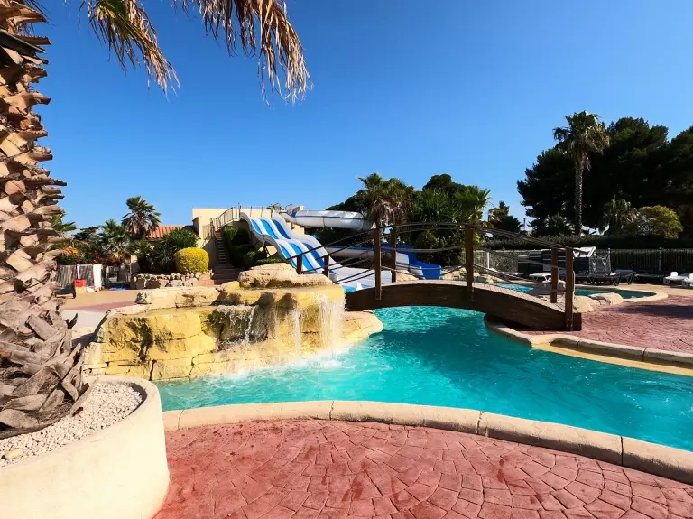Profitez de notre superbe complexe aquatique. Faites quelques longueurs dans notre bassin de 700m2, amusez-vous dans notre espace ludique avec toboggans ou relaxez-vous au bord de la piscine. Les petits pourront quant à eux profiter d'une pataugeoire. En tant que locataire du domaine, vous bénéficiez gratuitement de l'infrastructure sportive complète existante (terrain multisport, beach volley, pistes de pétanque, tables de ping-pong). Une plaine de jeux est aussi disponible pour les enfants.