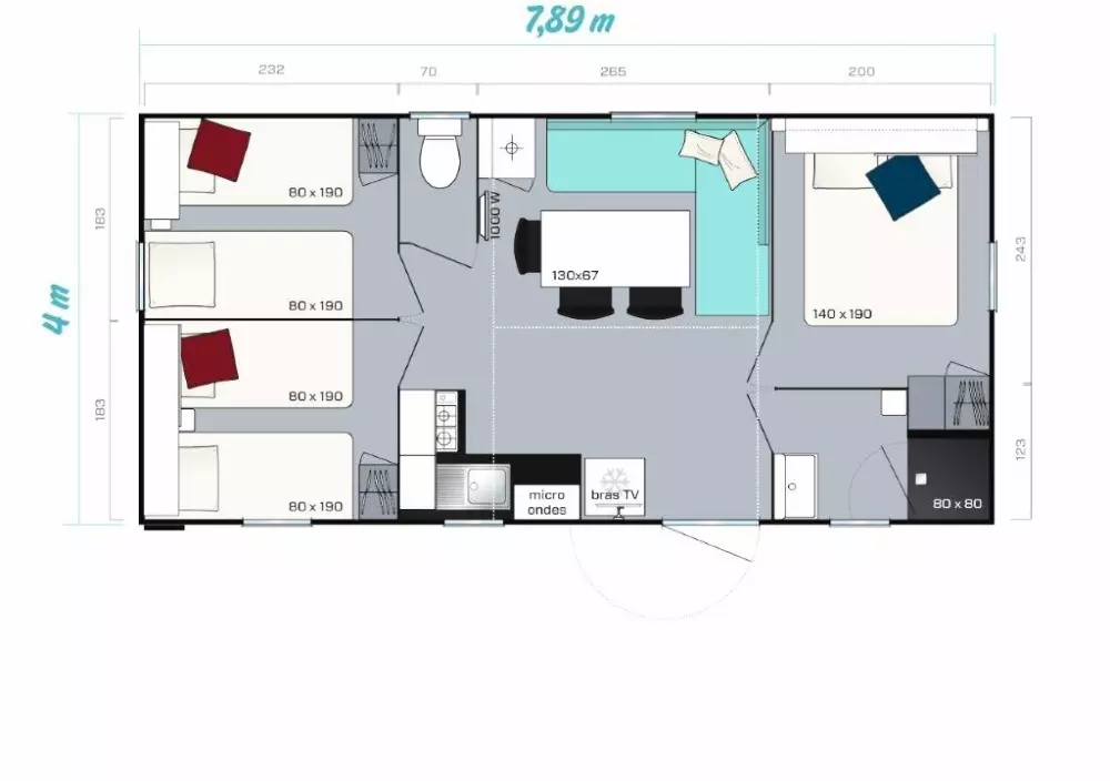 * Des emplacements mi-ombre, mi-soleil délimités et alimentés en électricité (6 ampères).