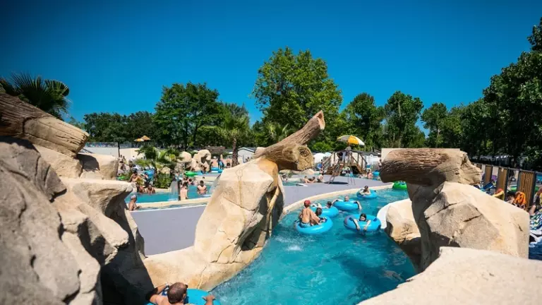 Le camping dispose d'un parc aquatique comprenant une piscine couverte chauffée, 2 piscines extérieures avec pataugeoires et 2 toboggans aquatiques.