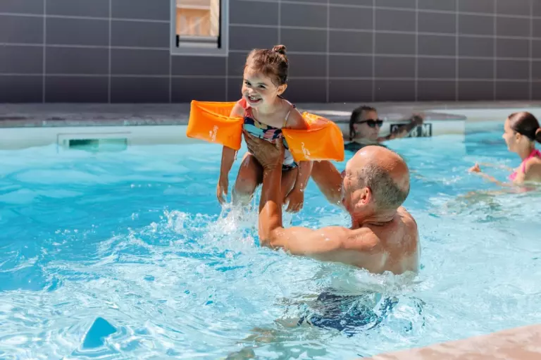 - Piscine extérieure avec jets d'eau, coin balnéo et pataugeoire