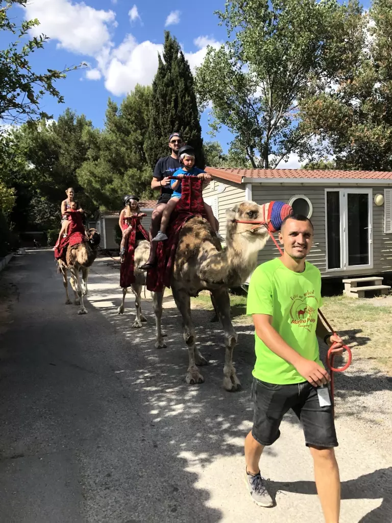 Au sein du camping, les enfants sont privilégiés et peuvent participer à différentes activités 100% gratuites telles que les tours de manège, l'école du cirque et les spectacles, les jeux gonflables, les soirées dansantes et cabarets, le tir à l'arc ou encore les balades à dos de poney, ou même à dos de dromadaire. Pendant que les enfants s'amusent comme des petits fous, les adultes peuvent s'affronter lors d'un tournoi de pétanque ou se dépenser à la salle de musculation.